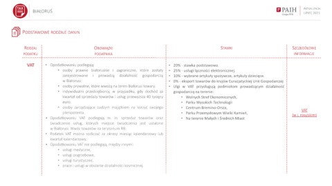 • osoby prywatne, które wwożą na teren Białorusi towary. • Ulgi w VAT przysługują podmiotom prowadzącym działalność