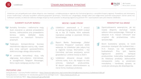 Uzbekistan UWARUNKOWANIA RYNKOWE AKTUALIZACJA: 1.07.2020